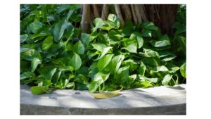 que existen. Recordamos que es una enredadera, de la familia de las aracias, con tallos de hasta 20 metros de longitud, hojas aovadas o cordiformes, de 30 centímetros, de color verde claro brillando con manchas amarillas. Originaria de las islas Salomón, su forma es muy cultivada como planta de interior, puesto que resiste perfectamente las condiciones de sequedad ambiental. Se adapta fácilmente a temperaturas de entre 17° y 30 °C. Solo se tiene que regar cuando notamos que la tierra está seca. Es eficaz para absorber formaldehído, xileno y benceno.